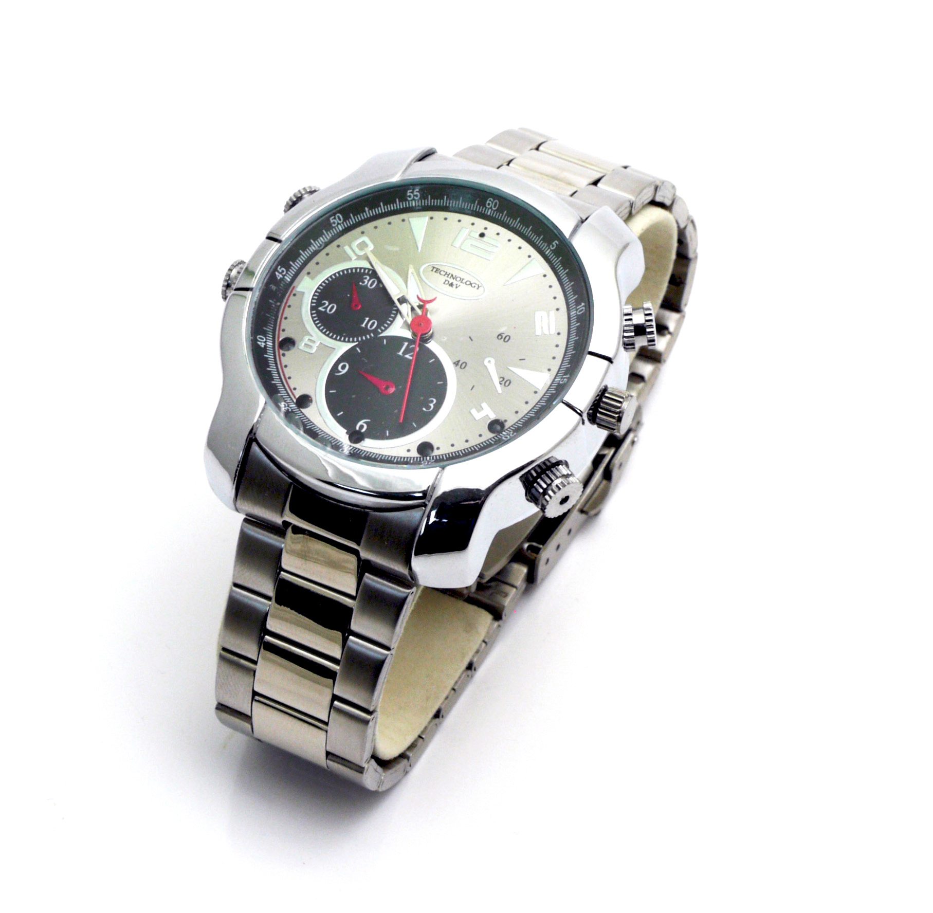 This classic time-keeping device conceals a quality video camera. Its stylish design suits any occasion or event. You can covertly start and stop high defiinition recording any time you want. All functions are completely disguised as normal watch buttons so nobody will be suspicious even if they look closely.