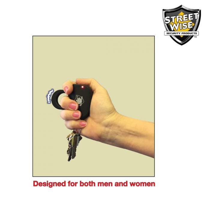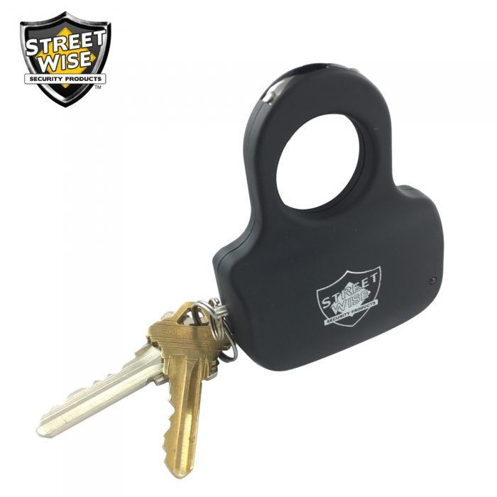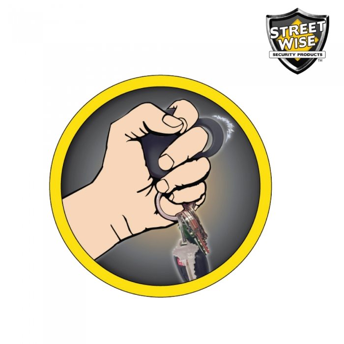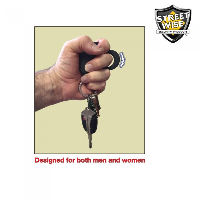 Streetwise Security Products has found a way to improve upon their bestselling stun gun by adding a keyring! With this power stun gun attached to your keys you will not have to be concerned about it getting lost in the bottom of your purse or wasting valuable time getting it out of your pocket. You will have the stun gun instantly accessible at the time when people are most vulnerable to attack – while walking to or from their car. With a set of keys attached to the unit, you have the option to strike with your keys, shock with stun gun, or both! This revolutionary, patent pending model separates itself from all other stun guns on the market today.